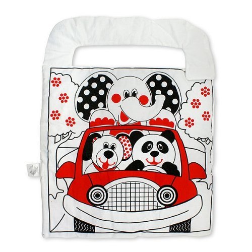 Bright Starts Car Activity Center by Genius Baby Toys.Babies up to six months respond best to visual black and white. This reversible Bright Starts Car Activity Center features bright black, white and red, bold graphics with friendly faces, geometric patterns, a baby-safe mirror, and vinyl pockets to hold photos or flashcards. There are many sets of two-in-one activities. This Car Activity Center easily attaches with Velcro,around the front seat of your car and will keep your little traveler occupied while you are driving.Suggested Ages Birth - 24 months+ Readmore .. .